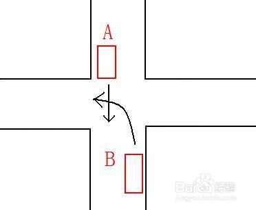 左转弯让直行,下图中B车左转弯,要让直行的A车