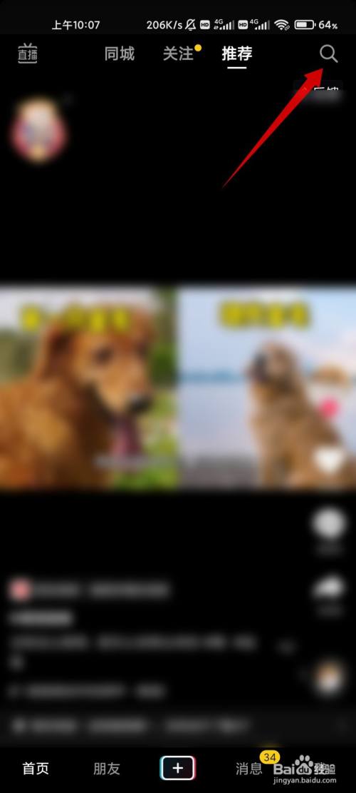 打开抖音首页,点击右上角的搜索图标。