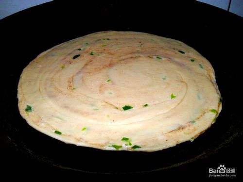 14将平底锅烧热后倒入一点香油,放入薄饼,用中小火烙。一面烙约1分钟时,在表面刷薄薄的一层油后,翻面儿再烙。