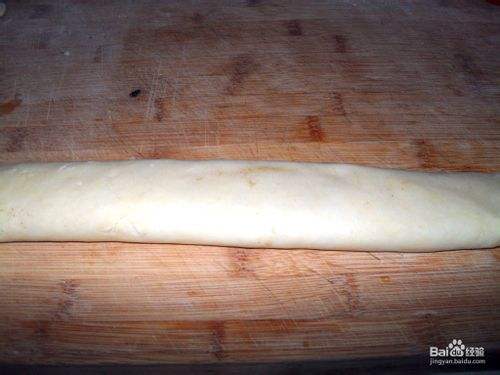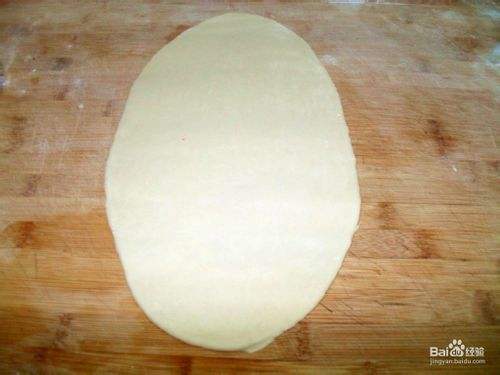 5把醒好的面团擀成薄薄的长椭圆形,涂上一层香油