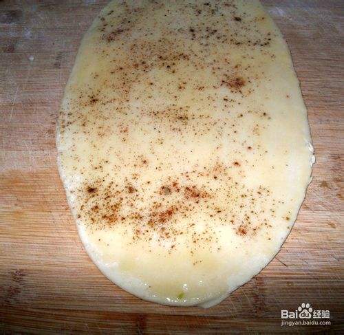 3:在擀好后的面片上刷上一层香油,使饼的浓香味很重。
