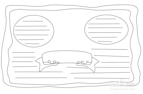 在贺卡的上面左右两侧再画出两个椭圆形,如图所示:
