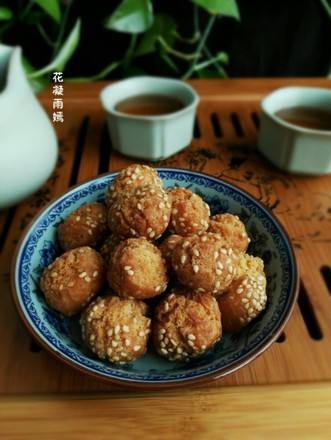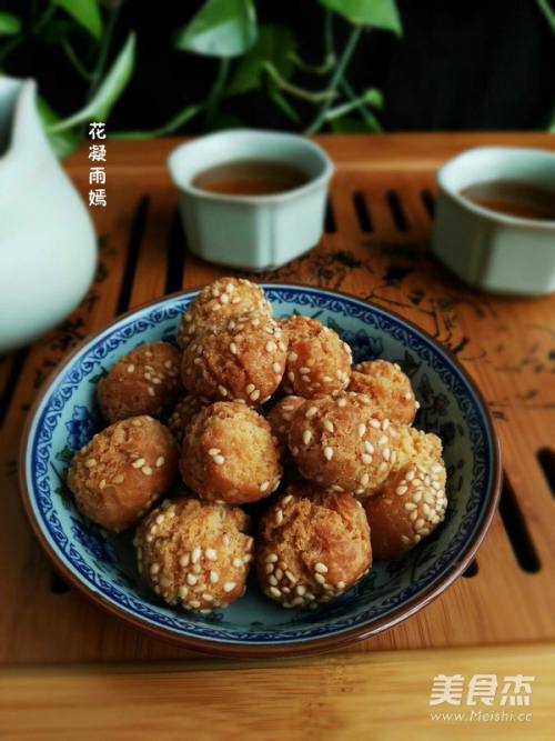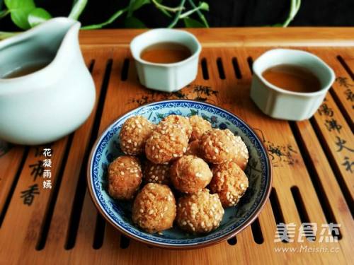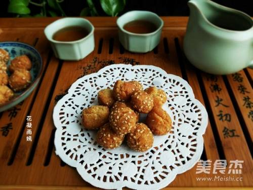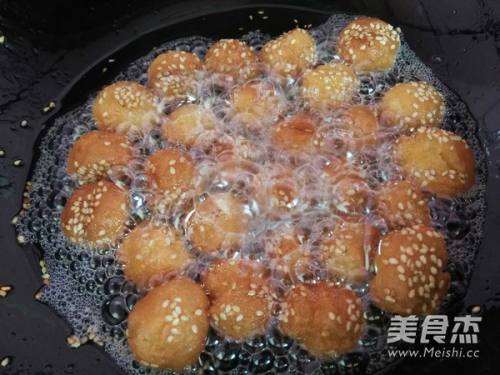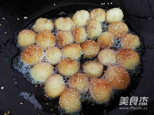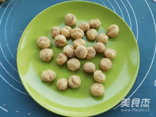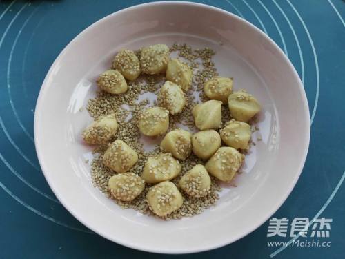 6把剂子放入芝麻里,使外表都裹上一层芝麻