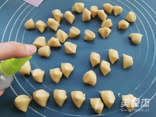 1白糖、盐、油、水蛋先混合搅拌,然后放入面粉,玉米淀粉,鸡蛋液,小苏打,泡打粉和成面团