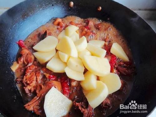 加土豆、盐翻炒均匀,再烧20分钟左右,待土豆熟透