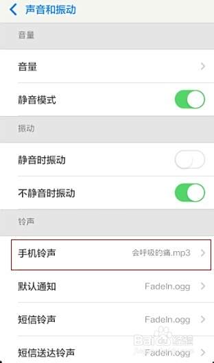 声音和振动中的——手机铃声,如果你其他的铃声也要设置也可以同样的操作