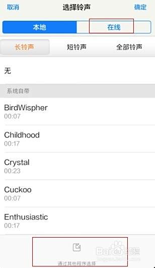 本地铃声都是系统自带的,你可以在线下载也可以把自己下载的歌曲做为铃声,可以通过其他程序选择