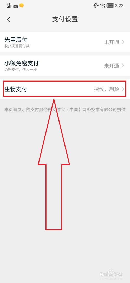 4在支付设置中点击“生物支付”。
