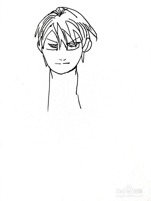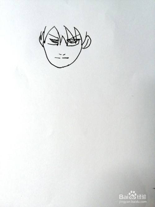 其次,确定脸部轮廓,画出额头头发、耳朵和嘴巴。