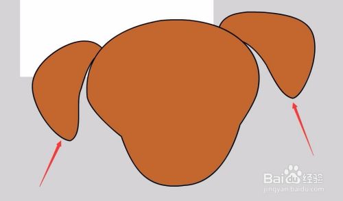 使用钢笔工具,绘制两个形状,作为狗狗的耳朵,如图所示: