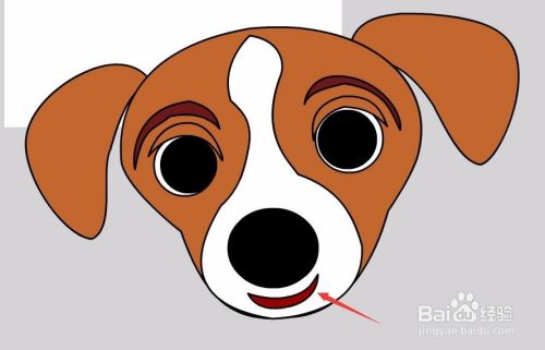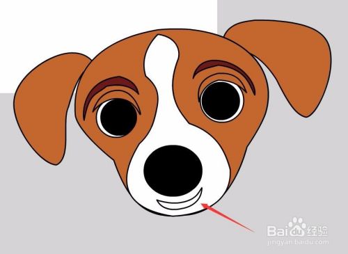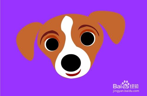 整理图形,将边框线条删除,调节大小,将其放到舞台的中央,我们的可爱的狗狗就绘制完成了,如图所示: