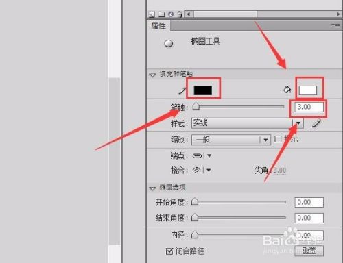 选择椭圆工具,在属性里设置填充色为白色,笔触颜色为黑色,笔触大小为3,如图所示: