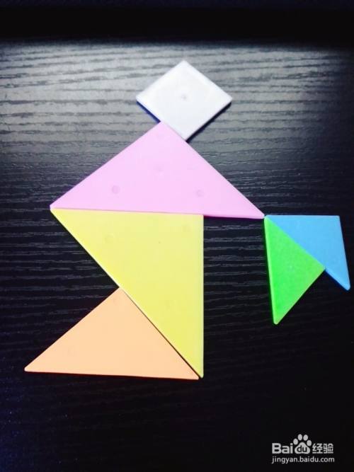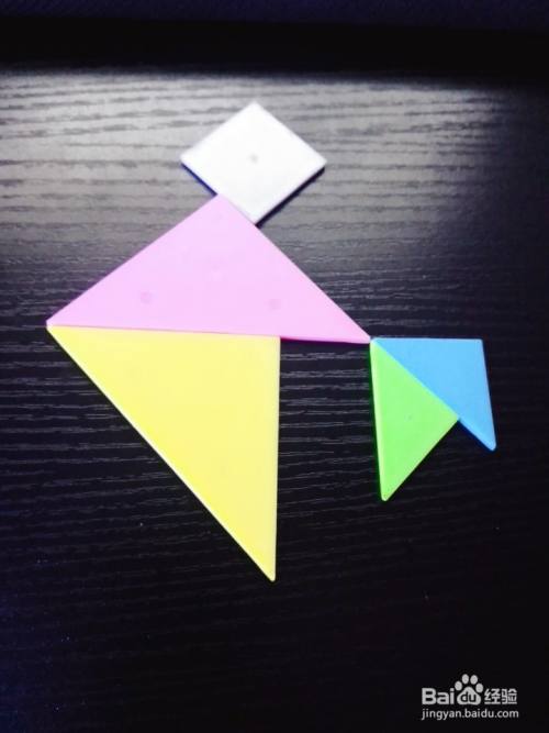 拿出一个白色正方形板和一个粉色大号三角形板放好,如图所示。