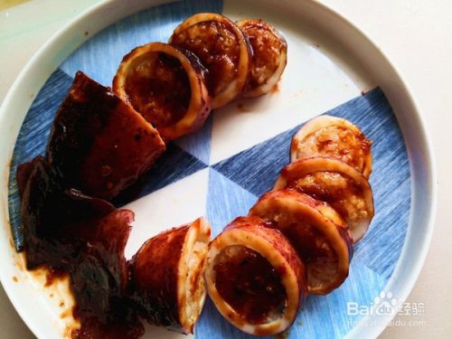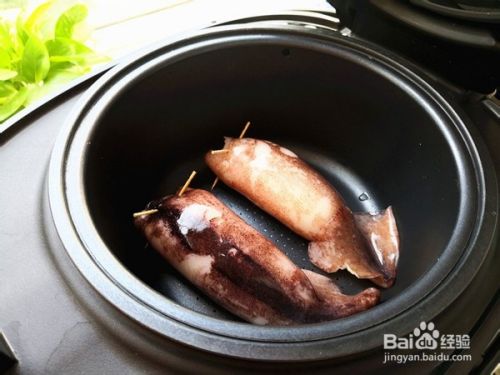鱿鱼塞糯米的时候,一定一定不能塞太多,不然鱿鱼受热回缩糯米饭就会被挤出来。