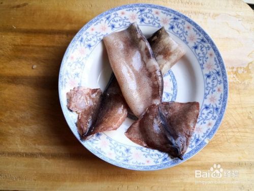 鱿鱼去掉头和内脏,再把鱿鱼管里的东西清理一下,冲洗干净备用