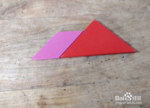 摆上余下的大三角形,放在大三角形的下面挨着,右端一齐,如图。