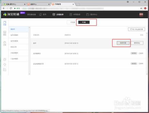 在后台选择【PC端】,找到首页后,点击右侧的【装修页面】按钮