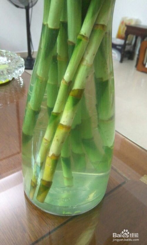 把新买来的富贵竹清理下枝干上的叶子,然后插入花瓶中,水能淹没没有枝叶的地方就行。(水最好先沉淀一下)