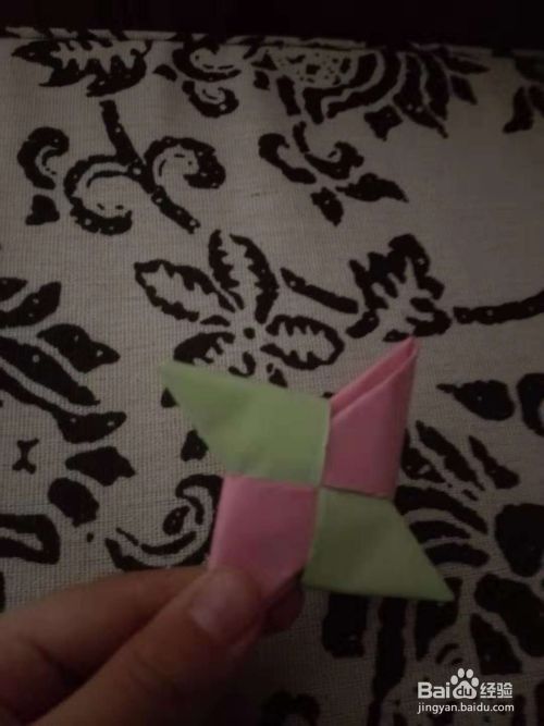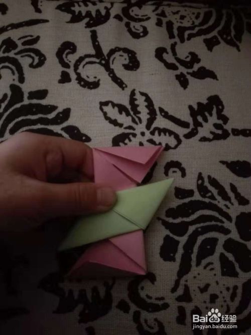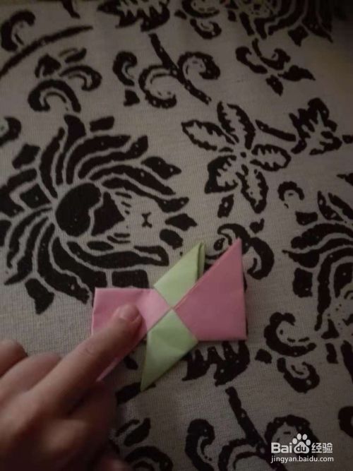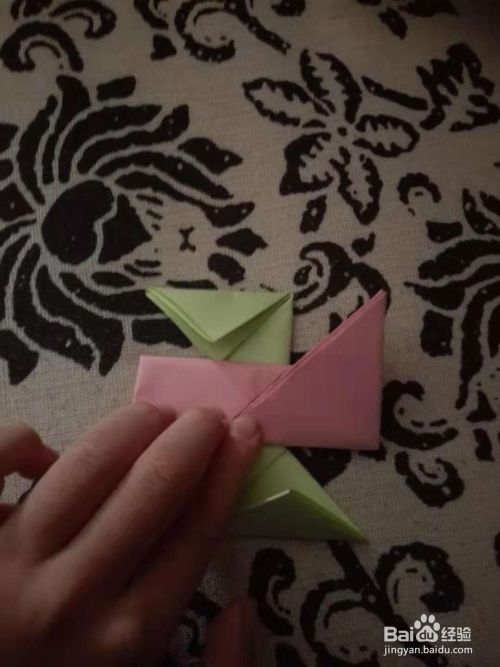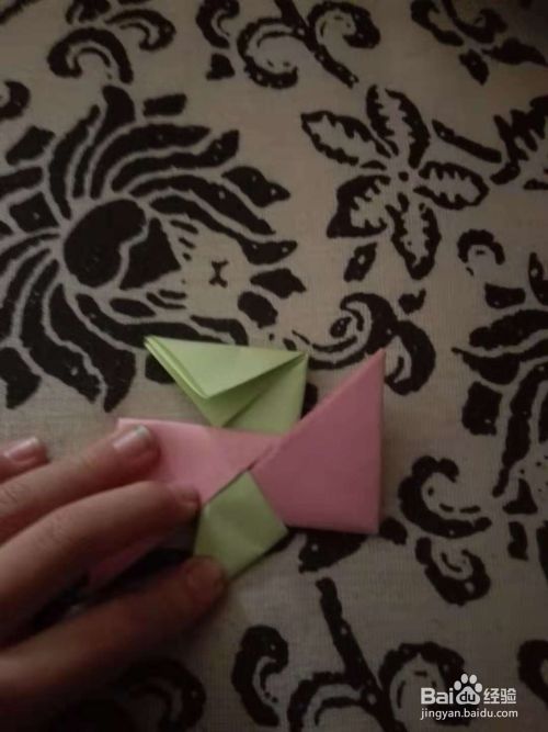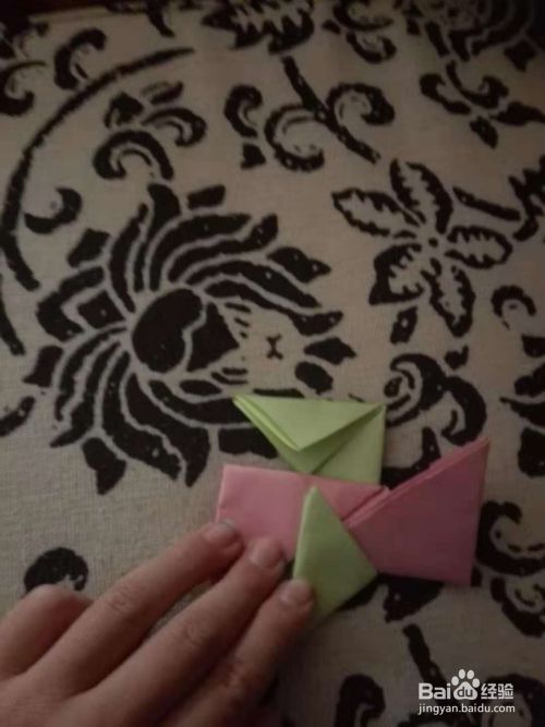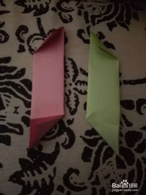 绿色彩纸重复步骤7~8,然后把它翻过来,并如图所示摆放。