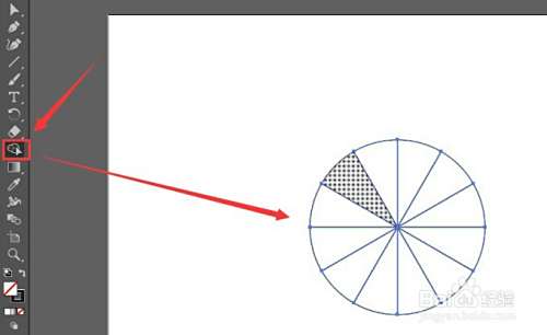 第二步,选中直线工具沿圆心画出等距线条后,点击形状生成器工具去除线条多余部分,并将每个区域进行分割;