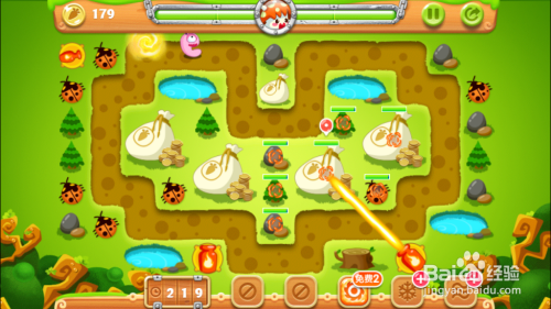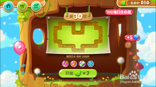 我在3个地方分布了雪花用来冰冻,但是这一关没有通关成功,失败后向下降了一层。