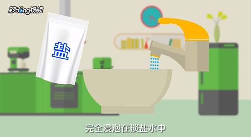 去皮的菠萝完全浸泡在淡盐水中可保存24小时。
