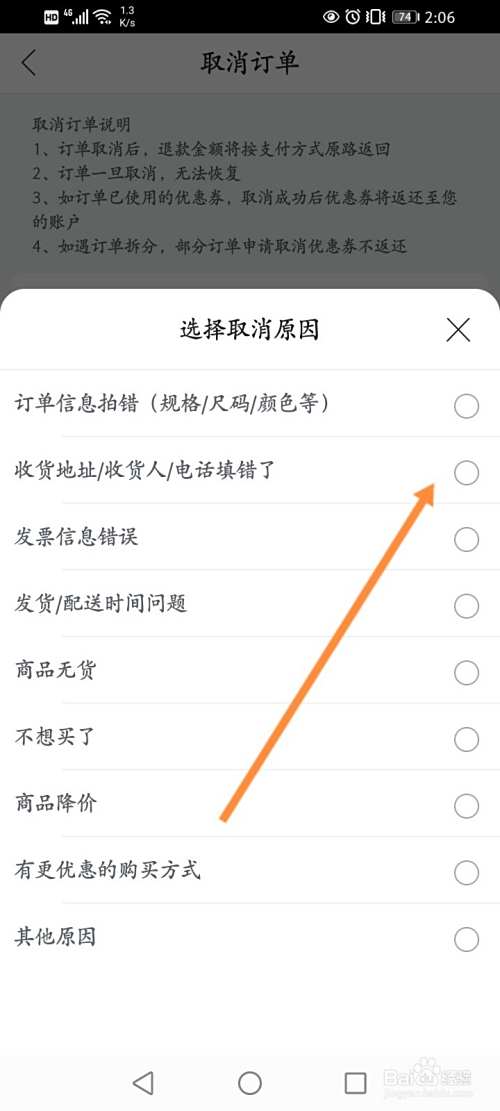 选择取消的原因。