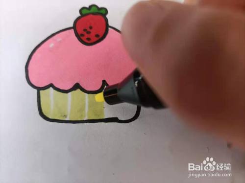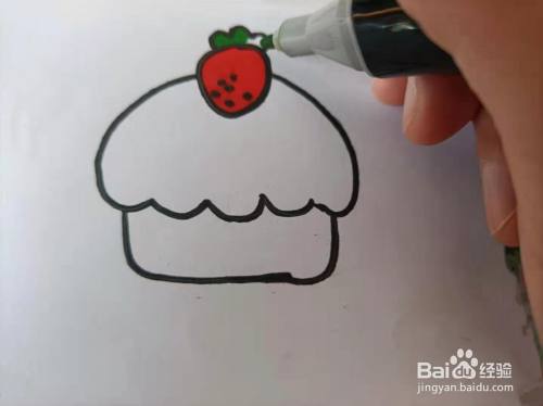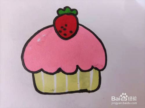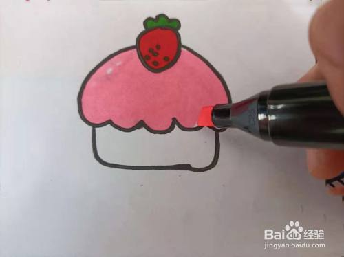 粉色的草莓蛋糕十分可爱,喜欢的小伙伴们,拿起手中的画笔,一起画起来吧!