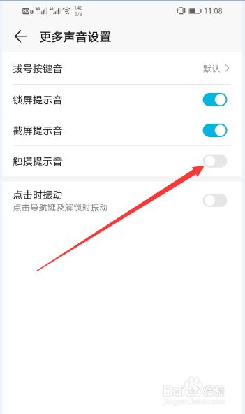 第4步进入到更多声音设置后,在更多声音设置中找到触摸震动声音提示,这里直接点击这个功能开关。