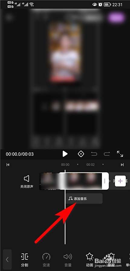 点击页面下方的音频提取,选择手机上的音乐,就可以把视频和音乐合在一起了。