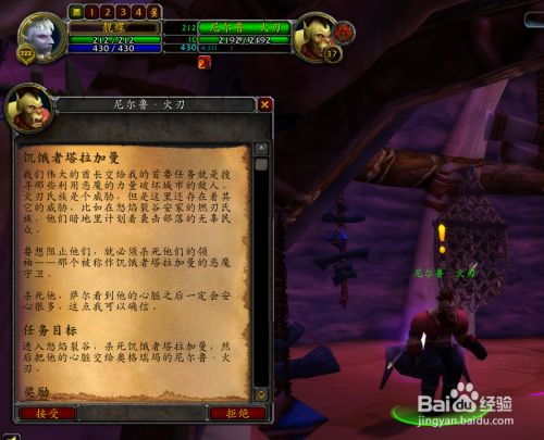 【任务重点】在奥格瑞玛的暗影裂口的尼尔鲁·火刃处(坐标50,51)接的任务,需要进入怒焰裂谷,杀死饥饿者塔拉加曼,然后把他的心脏交给奥格瑞玛的尼尔鲁·火刃。