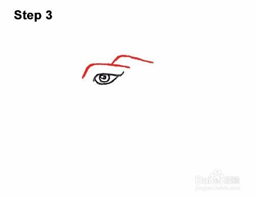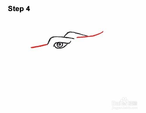 第3步:在眼睛上画一条曲线,以获得厚厚的眉骨。在鳄鱼头部另一侧的眉毛右侧添加一条曲线。