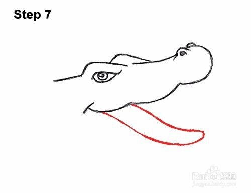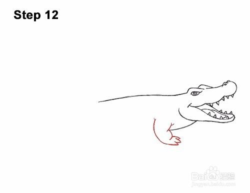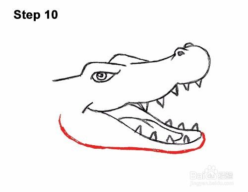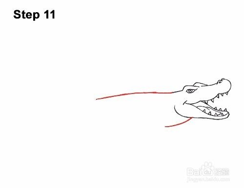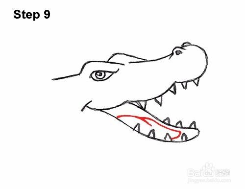 第九步:如果你的嘴巴底部有空间,为鳄鱼的舌头划两条曲线。
