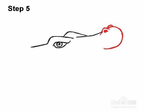 第5步:在右侧,在鼻孔下方画一条小曲线和一个大点。现在画一条大的曲线,形状与鳄鱼嘴尖的后向字母C相似。在另一个鼻孔的顶部添加另一条小曲线。