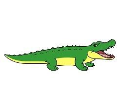 最后一步:使用彩色铅笔,标记甚至蜡笔为卡通鳄鱼/鳄鱼涂色!将身体的上半部分和腿部染成黄绿色。身体的下半身使用黄色。如果你愿意,你可以以不同的颜色绘制你的鳄鱼图。口内使用棕色,舌头使用粉红色,眼睛使用绿色。不要忘记暂停视频以自己的速度绘制。