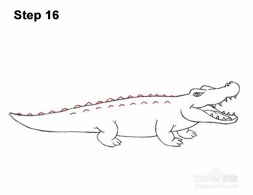 第十六步:在鳄鱼皮纹尖的背部和尾部绘制一系列短而三角形的形状。在靠近顶部的身体内添加另一排尖刺。如果您愿意,还可以在下面添加第三行。