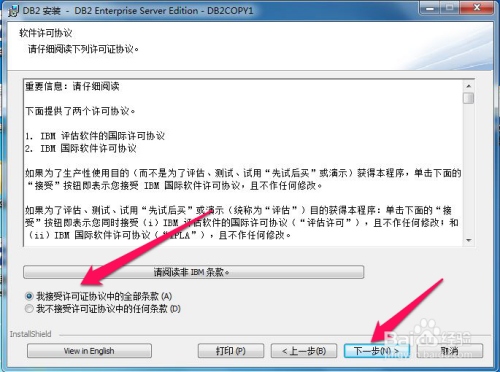 然后这里要勾选【我接受许可证协议中的全部条款】,然后默认点击【下一步】,如下图: