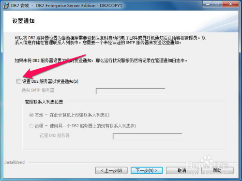 这里取消勾选【设置DB2服务器以发送通知】,然后默认点击【下一步】,如下图:
