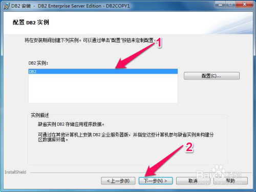 这里是配置安装数据库的时候会自动创建一个名为DB2的实例,这里是要配置这个DB2实例,我们保持默认即可,然后默认点击【下一步】,如下图: