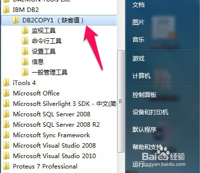 打开开始菜单就可以看到已经安装好的DB2在开始菜单中创建的各种文件夹了,如下图: