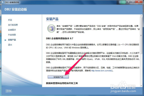 然后在 DB2安装启动板 中点击【安装产品】,如下图: