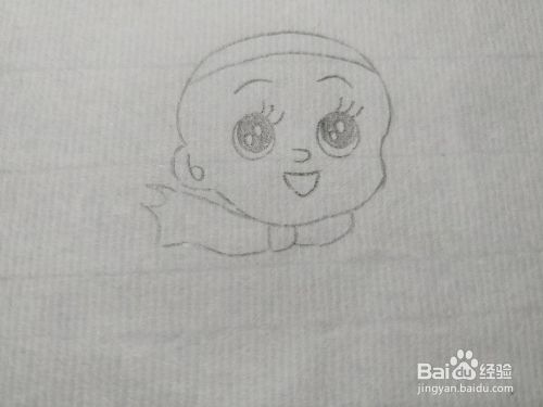 然后在大头儿子的脖子上画出一条红领巾。