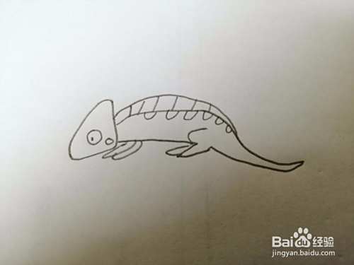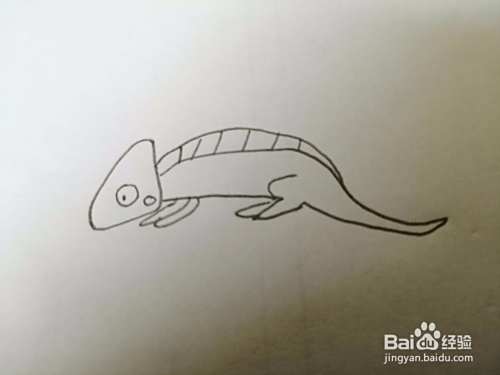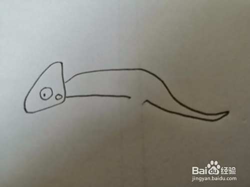 画出蜥蜴扁扁的头部。要有一边是直的。和蜥蜴的脖子相连。