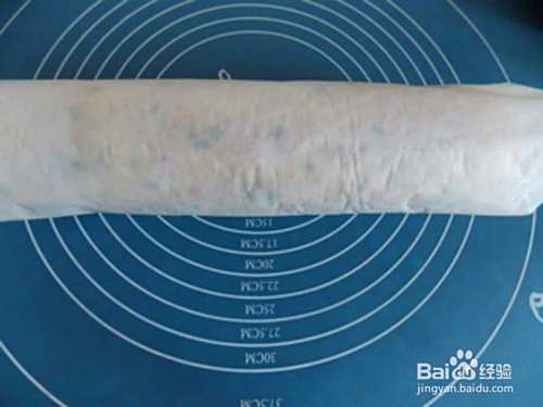 卷好的面包卷,根据自己喜欢的大小切成段。我的切了三段。分别在两头涂抹上沙拉酱。