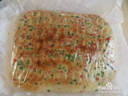用保鲜膜把面包表面包起来。目的是为了让面包在散热回软的同时也具有很好的湿度。