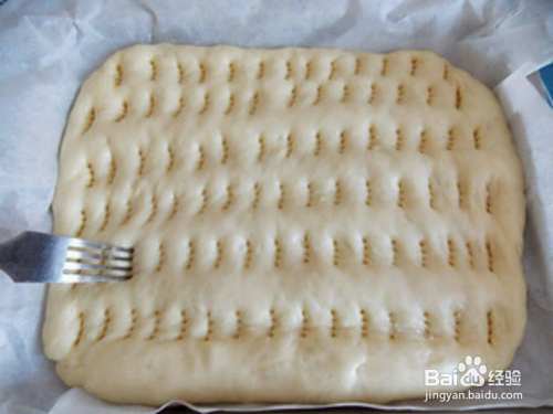 放在烤盘里,进行最后的发酵。发酵至原来的2倍大即可。