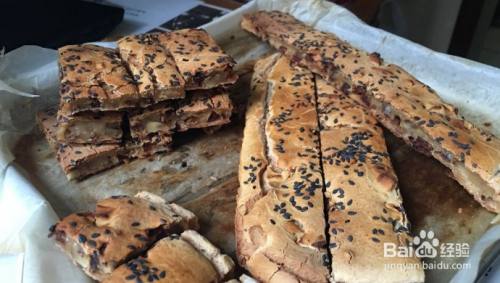 定型后将剩下的面糊一起倒入,铺匀,不要让红枣核桃露出来,避免烤焦,再撒上一点黑芝麻,放烤箱烤15到20分钟左右,面上有微微焦色即可
