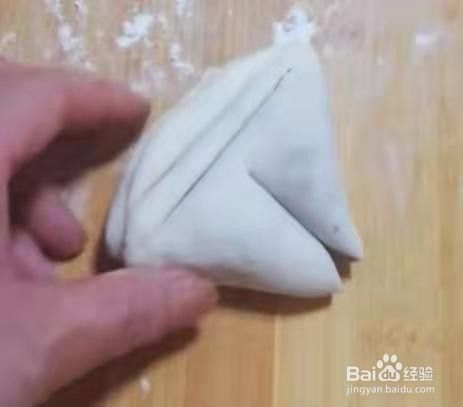 把另外两个角捏在一起,整理一下,猪蹄卷就做好了。见下图