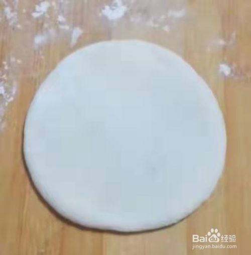用手按压一下,再擀成圆形面皮。见下图