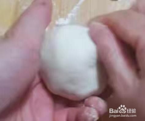 把豆沙放在面皮中间,包好。见下图